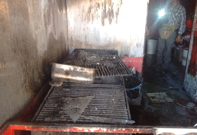 25/10/2016 - Elementos del Heroico Cuerpo de Bomberos atendieron el reporte de un incendio en un puesto de hamburguesas ubicado en la colonia Infonavit Buenavista. El incendio que causó daños mater