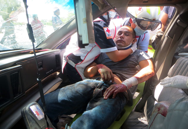 17/09/2016 - Cinco personas resultaron lesionadas, tras de involucrarse en el choque de dos camionetas sobre la carretera a Ciudad Victoria, frente al ejido La Tijerita. Las señoras María Blanco Go