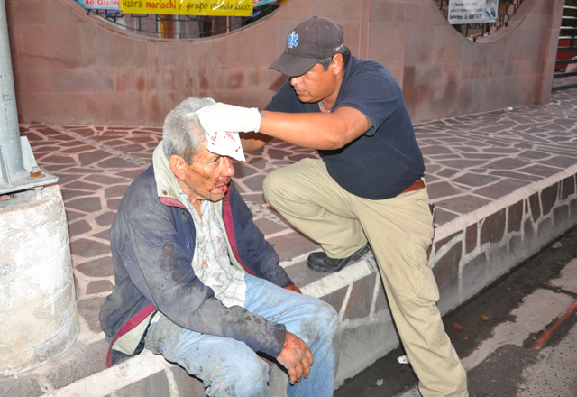 19/09/2016 - En condiciones críticas de salud resultó un adicto al alcohol, denominado aguardiente, o guachicol, ya que al andarla haciendo de franelero, "viene", "viene", en el estacionamiento de