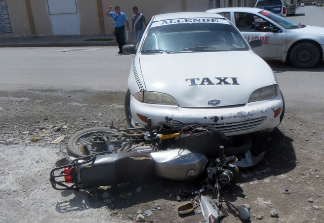7/09/2016 - Un motociclista se salvó de perder la vida en la avenidas Agapito González Cavazos y Cerro de Guadalupe de la colonia Lucio Blanco al ser embestido y arrastrado varios metros por el caf