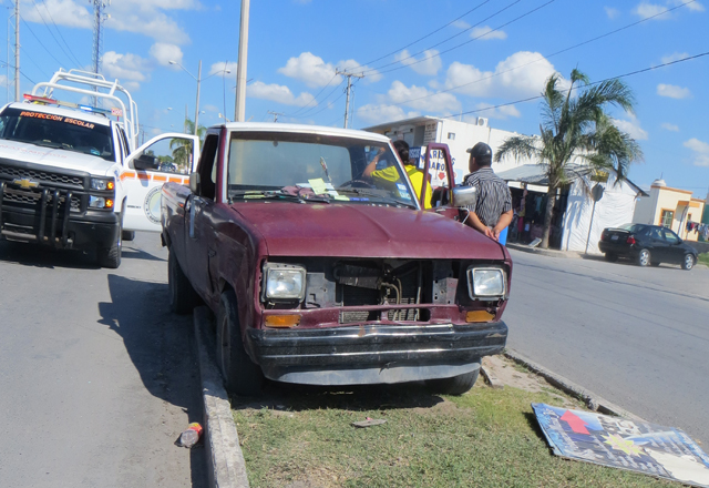 3/09/2016 - Una empleada de una tortillería resultó lesionada por la tarde, en la avenida principal del fraccionamiento Infonavit Los Palmares, al involucrarse en un choque de camionetas. Miralda B