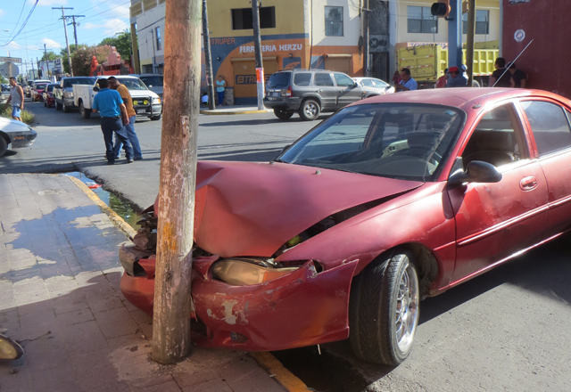 27/08/2016 - Un residente del fraccionamiento Valle de Casablanca y su hijo, resultaron lesionados por el conductor de un auto Ford Mustang color verde, el que al tratar de escapar se impactó contra