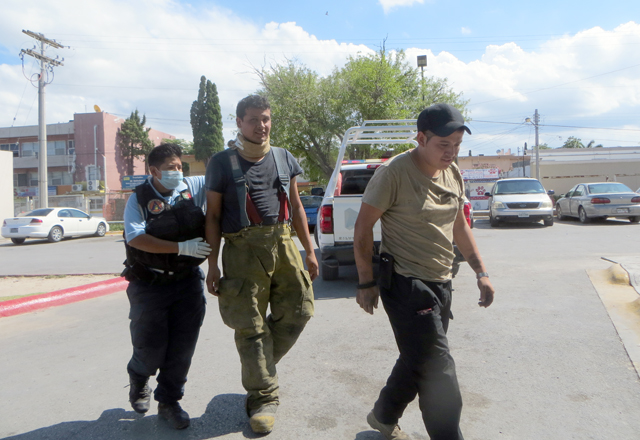 29/08/2016 - Un elemento del Heroico Cuerpo de Bomberos se lesionó el cuello con un cable, cuando se atoró al ir en la parte de un camión del cuartel de la colonia San Francisco, a un incendio por