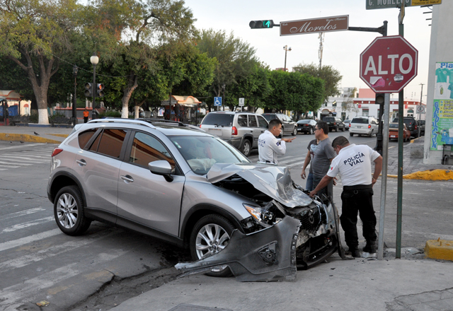 26/08/2016 - Debido a que presuntamente se le hacía tarde para llegar a su trabajo, fue que en horas de la mañana un alocado conductor que radica en la zona centro de esta ciudad termina chocando e