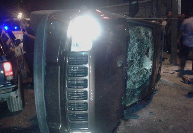 17/08/2016 - Dos personas lesionadas, además de cuantiosos daños materiales, fue el saldo que dejó el aparatoso choque y volcadura registrado a eso de la medianoche en la avenida Del Niño y Emili