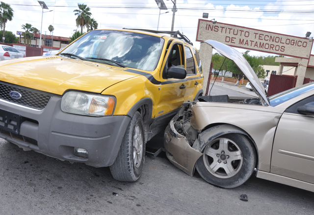 19/08/2016 - Un joven estudiante del Tecnológico de Matamoros ocasionó un aparatoso accidente al salir de dicha institución, pues se atravesó en plena avenida Lauro Villar y provocó ser chocada