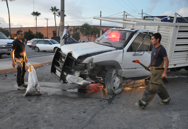 16/08/2016 - Considerables daños materiales fue el saldo que dejó un aparatoso accidente ocurrido ayer por la mañana en las avenidas Pedro Cárdenas y Longoria, hechos que causaron la movilizació