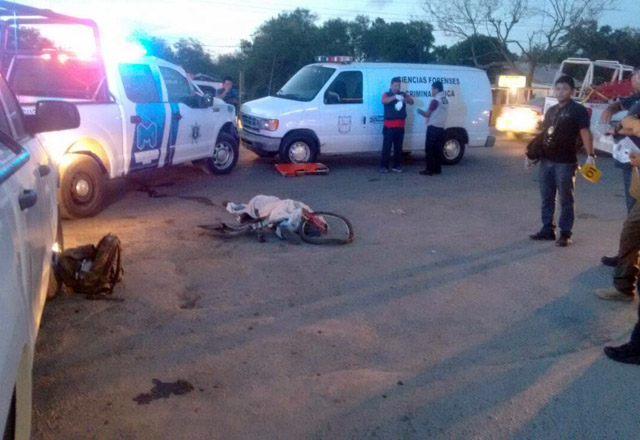 10/08/2016 - Un ciclista fue arrollado anoche en el Sendero Nacional justo en la entrada al fraccionamiento Brisas del Valle, perdiendo la vida de manera instantánea ya que fue un camión de transpo