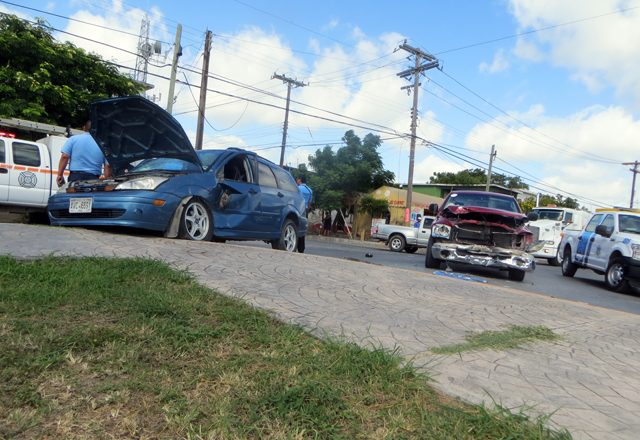14/07/2016 - Tres heridos graves, y daños materiales por muchos miles de pesos, fue el saldo de un fuerte choque de dos camionetas, en el cruce de la carretera a Reynosa, y el libramiento Emilio Por