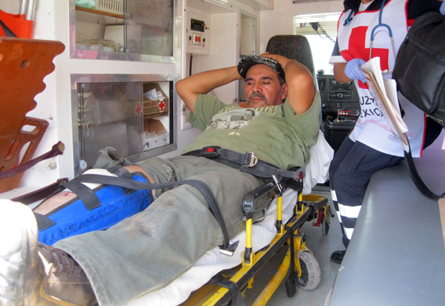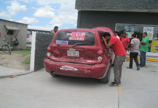 9/06/16.-Un empleado del circo Hermanos Canto, resultó con diversas lesiones en el cuerpo, a la altura del cruce del libramiento Emilio Portes Gil y la avenida Emiliano Zapata, al ser chocado por alc