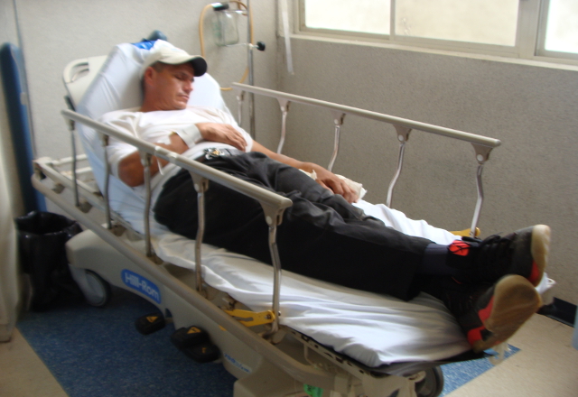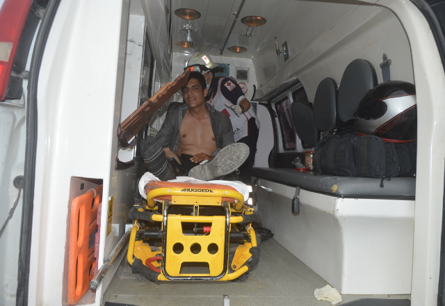 23/05/16.-Un vallehermosense que fue atropellado por raudo cafre del volante, fracturado de un brazo y con diversas lesiones ingresó a urgencias del Hospital General "Dr. Alfredo Pumarejo". Ricardo M