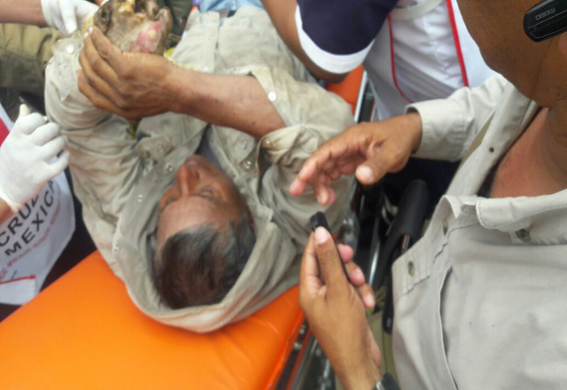 25/05/16.-Un contratista de la Comisión Federal de Electricidad que recibió una descarga eléctrica sobre un poste con un transformador ubicado en la calle Guerrero, entre 17 y 18, de la zona centro