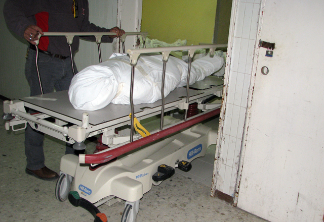 23/05/2016 - Agentes de la Policía Ministerial del Estado, al mando del comandante, Omar Martínez Saldívar, investigan el fallecimiento de un residente de la zona centro de la ciudad, en una sala d
