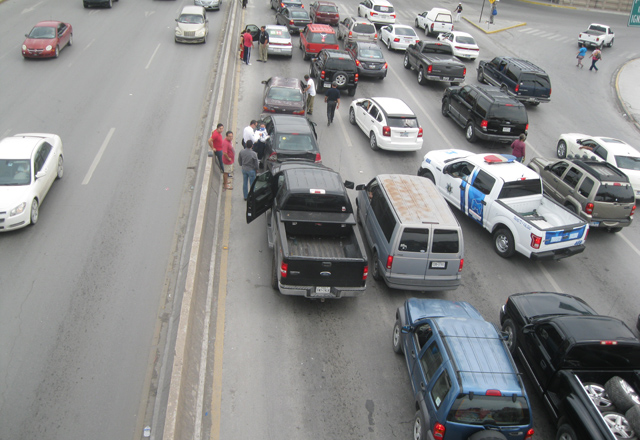 20/05/2016 - Una mujer y dos menores de edad resultaron golpeados en la avenida Pedro Cárdenas Gutiérrez y el boulevard Manuel Cavazos Lerma, al involucrarse en un choque carambola, donde una camio