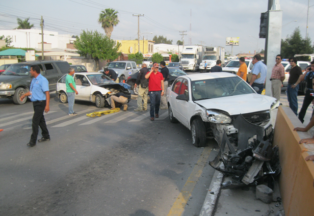 12/04/2016 - Cuatro personas lesionadas, una mujer adulta, una jovencita y dos niños, así como daños materiales por muchos miles de pesos, fue el saldo de un fuerte choque carambola de tres vehíc