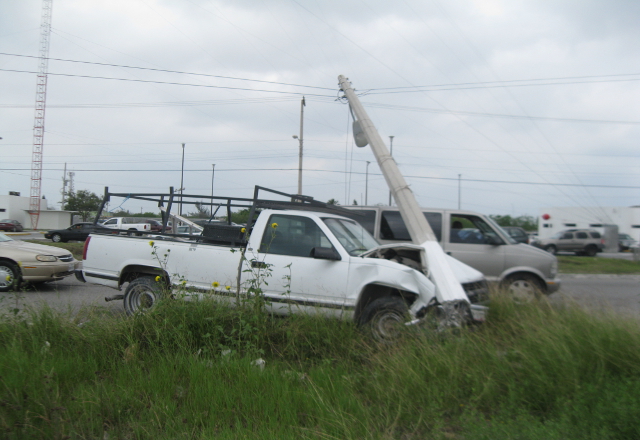 12/04/16.-Un albañil que presuntamente andaba ebrio, estrelló su camioneta con un poste de alumbrado público y lo destrozó, en la avenida Marte R. Gómez y la calle Tercera, de donde intentó huir