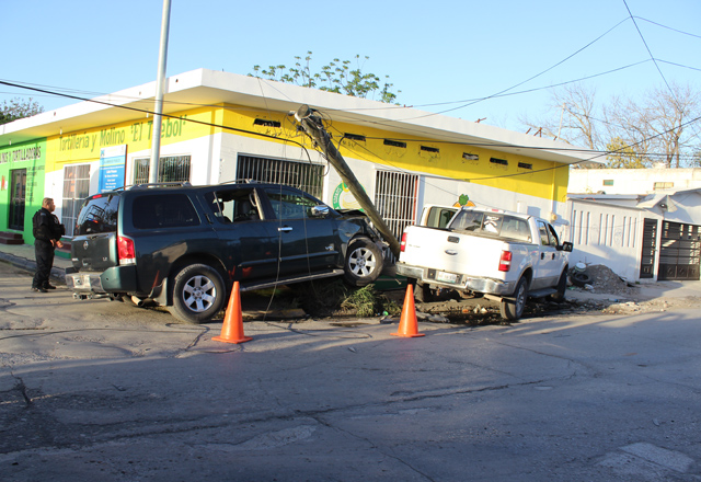 26/03/2016 - Cuantiosos daños materiales ocasionó un cafre del volante en las calles Primera y Solernau, de donde se dio a la fuga, tras impactar a una camioneta, y luego colisionar las dos unidade
