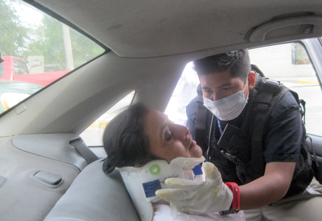 30/03/2016 - Tres mujeres que salieron lesionadas en un choque de vehículos por alcance sobre la avenida Pedro Cárdenas Gutiérrez, frente al Centro de Convenciones Mundo Nuevo, ingresaron al Hospi