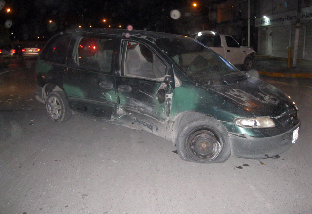 21/03/2016 - Un ebrio conductor semidestruyó su minivan en el boulevard Manuel Cavazos Lerma y la calle Arce, frente a la colonia Mariano Matamoros, ya que al ir en sentido contrario, se atravesó a