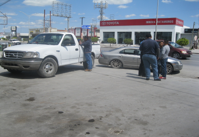21/03/16.-El conductor de una camioneta pick up, al salir sin precaución, en reversa del estacionamiento de una forrajera, chocó contra un automóvil que se detuvo, en hechos acontecidos sobre la av