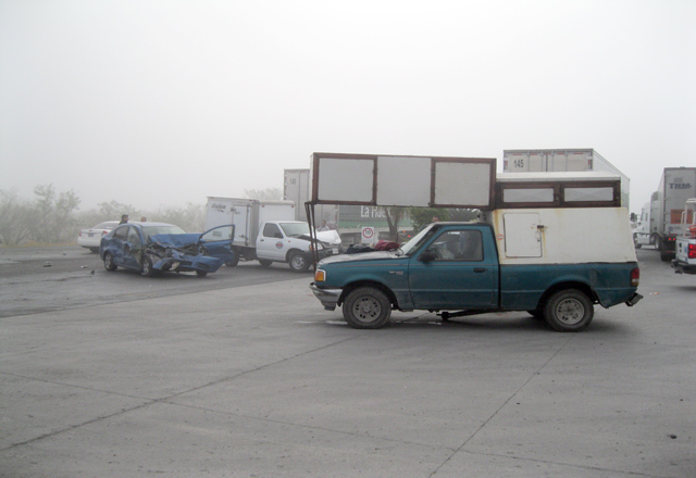 18/02/2016 - El conductor de una camioneta pick up salió mal herido en horas de la tarde al salirse de la carretera a Reynosa a la altura del kilómetro 4, e impactarse contra cinco vehículos y un