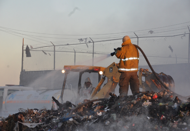 12/02/16.-Debido a que el basurero que se encuentra a un lado de “La Copa” del fraccionamiento Los Ángeles se incendió desde la noche del miércoles, los Bomberos estuvieron trabajando toda la n