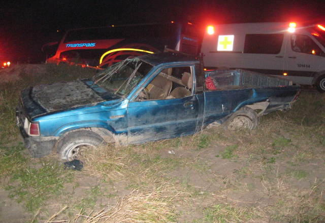 2/02/2016 - Una mujer muerta y otra lesionada grave, dejó como saldo la volcadura de una camioneta pick up, sobre la carretera a Ciudad Victoria, kilómetros adelante de la entrada a la brecha 82, c
