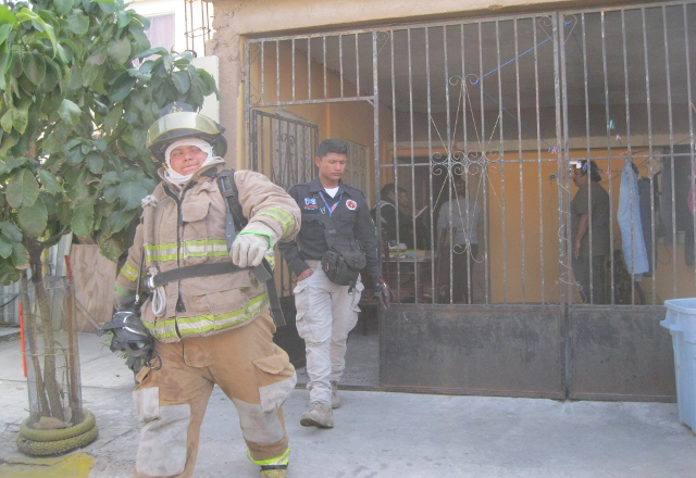 03/02/16.-Daños materiales por varios miles de pesos dejó el incendio en una casa habitación ubicada en el fraccionamiento Infonavit Satélite. Al momento de los hechos la dueña Cinthia Martínez