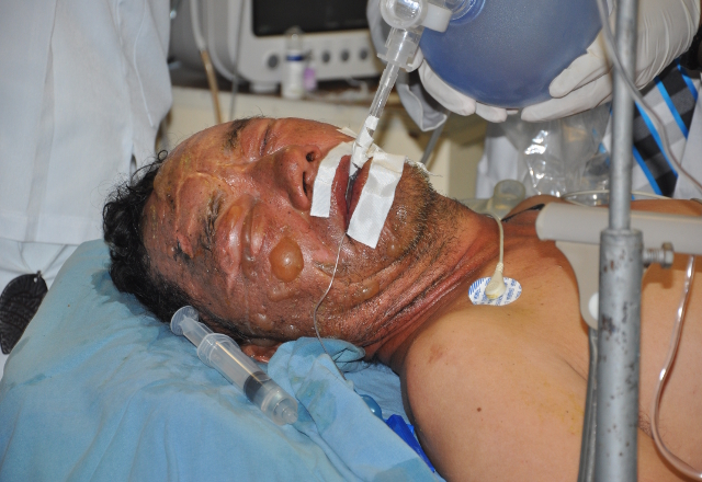 20/01/2016 - Un aspirante a bracero, originario de la República de El Salvador, se debate entre la vida y la muerte en una sala del Hospital General "Dr. Alfredo Pumarejo", ante las severas quemadur