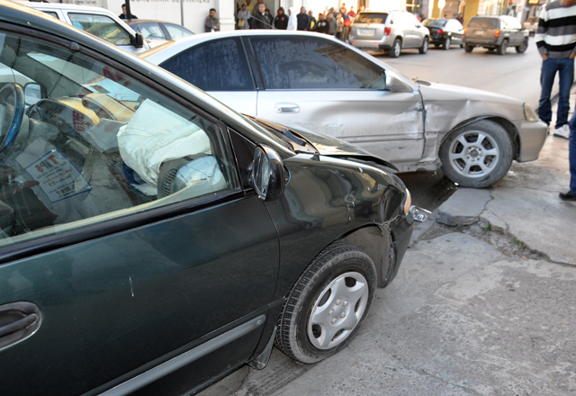 19/01/16.-Un adolescente protagonizó un choque por alcance en las calles Quinta y Morelos, ya que al fallarle los frenos al carro que tripulaba, chocó por alcance dos automóviles. Alan Alexis Hern