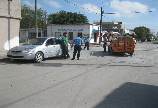 9/01/16.-Un particular provocó que le chocaran su automóvil en las calles Naciones Unidas y Voz de la Frontera, ya que salió en contra de una tortillería, y dio una vuelta en bocacalle, invadiendo