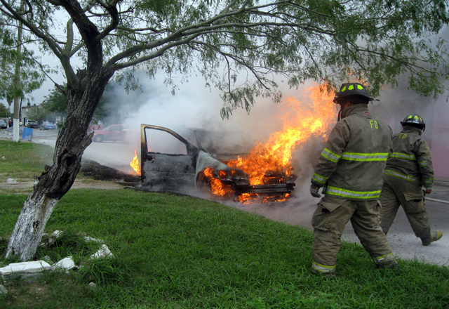 12/01/2016 - Un matrimonio se salvó milagrosamente de perder la vida calcinado, en horas de la tarde de ayer, en calles de la colonia Guadalupe Victoria, al incendiarse totalmente la camioneta miniv