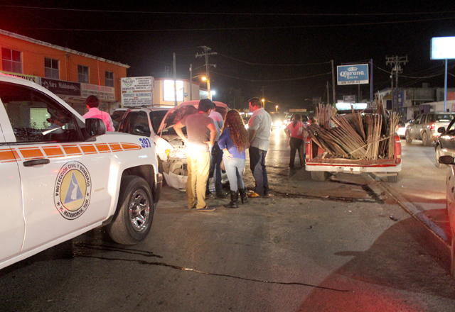 21/12/15.- Una mujer del fraccionamiento Palmares de las Brisas resultó lesionada cuando fue prensada por su camioneta cuando ésta fue impactada por el conductor de una camioneta Ford 2007, la que e