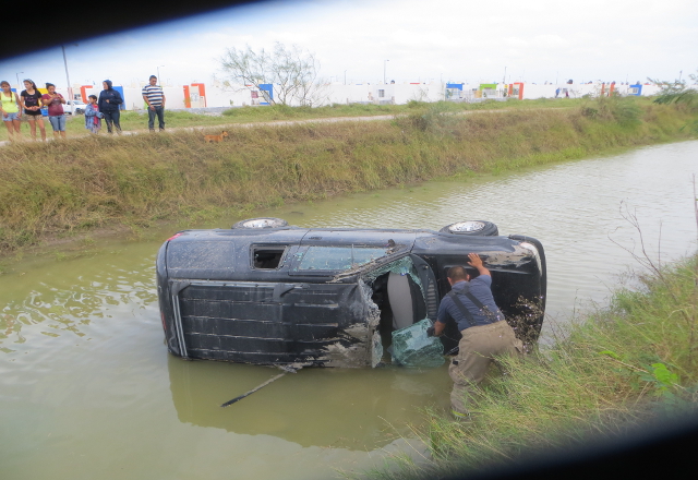 21/12/15.- Una mujer residente del fraccionamiento Palmares, volvió a nacer, pues milagrosamente salió ilesa al volcar la camioneta que conducía en un canal que corre paralelo a la brecha 15, por l