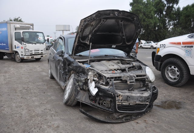 Tráiler choca contra un auto al dar vuelta