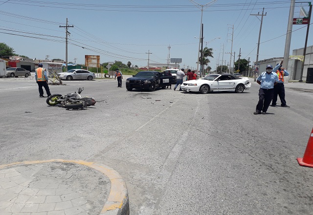 Un menor de edad se debate entre la vida y la muerte en una clínica de esta ciudad, a consecuencia de las graves lesiones que le resultaron al chocar la motocicleta en la que viajaba contra un autom