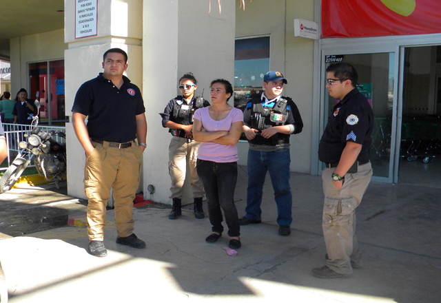 15/12/2015 - Elementos de Protección Civil, al mando del titular Humberto García González, se llevaron los honores al mediodía de ayer, en el exterior de un centro comercial, al retener a una ex