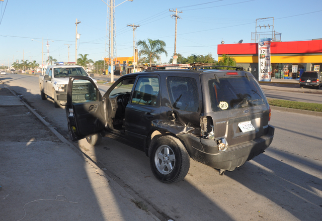 14/12/2015 - Cinco personas resultaron golpeadas, tras de participar en un choque de dos vehículos, sobre la avenida 12 de Marzo, a la entrada del fraccionamiento Los Palmares. Hortensia Limón Segu
