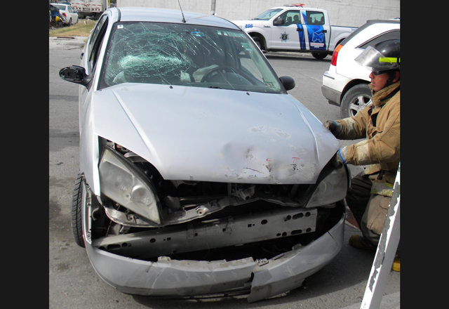 17/11/15.- Un saldo de un herido y considerables daños materiales, dejó el aparatoso accidente vial ocurrido en las calles 12 y Diagonal Cuauhtémoc, lugar donde estuvieron presentes las autoridades