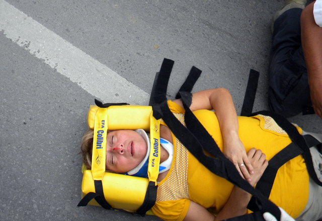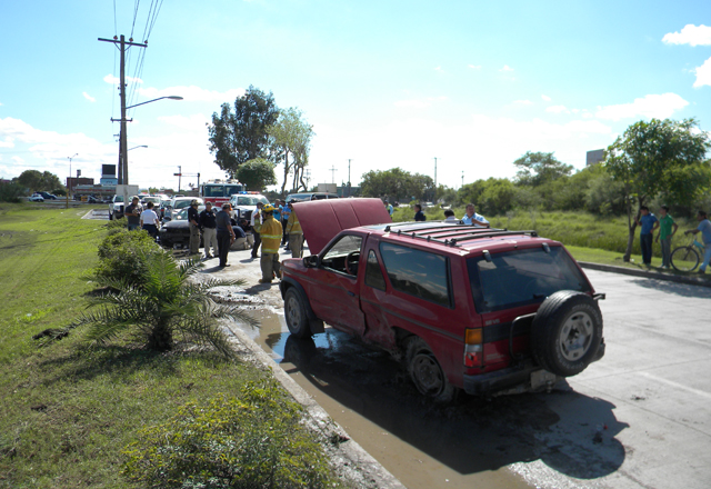 4/11/2015 - Una mujer resultó lesionada a la entrada del Parque Finsa y carretera del Sendero Nacional, al impactar su automóvil contra una camioneta, después de que se le aceleró el motor y no l