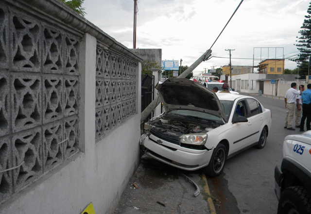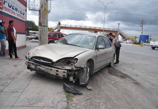 10/10/2015 - Una mujer y su hijo menor de edad salieron ilesos la mañana de ayer en las calles Tercera y Veracruz, frente al taller municipal, al estrellarse el automóvil en el que viajaban, contra