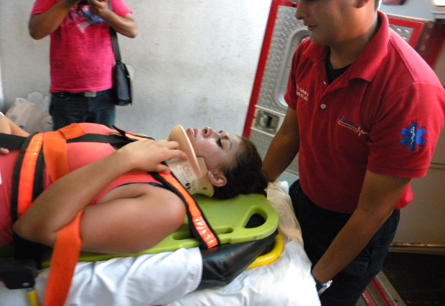 12/10/15.- Una joven mujer de la colonia Popular resultó con diversos golpes y lesiones en el cuerpo al involucrarse en un choque de vehículos cuando salía de su domicilio. Diana Margarita Lavín G