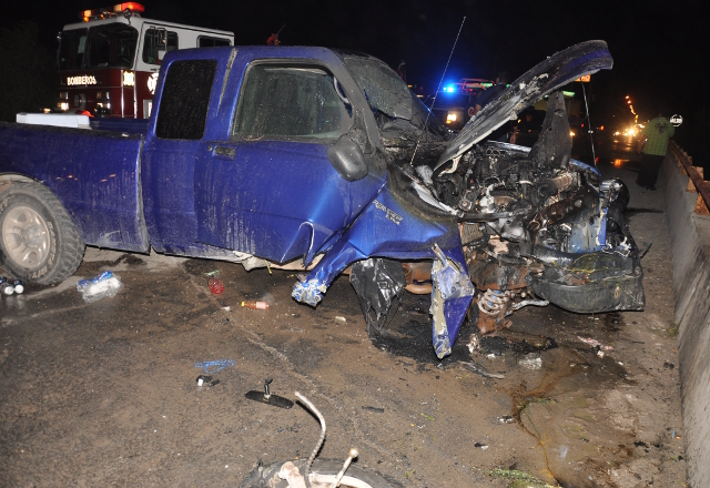 8/09/15.- Debido a que andaba en completo estado de ebriedad fue que un alocado tipo estampó su camioneta pick up en la que andaba “agarrando la jarra” contra el muro de contención del puente qu