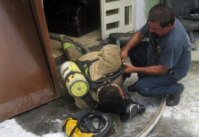 10/09/2015 - Un bombero lesionado en una caída, ante un repentino estallido, y pérdidas materiales no cuantificadas en pesos, fue el saldo del incendio en una casa habitación en la colonia San Mig