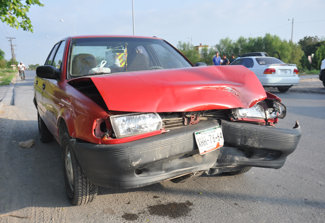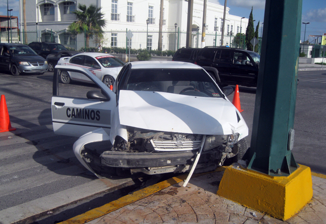 10/09/2015 - Dos pasajeros de un carro de alquiler resultaron con golpes contusos en sus cuerpos en la calle González y boulevard Manuel Cavazos Lerma al chocar éste contra el de un ebrio que se at