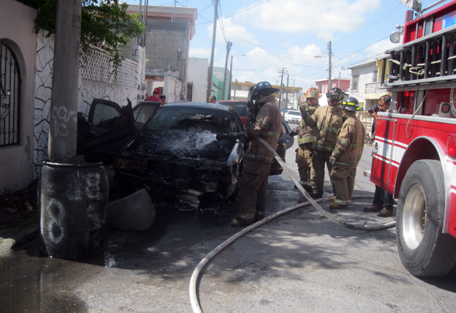 8/09/2015 - Un automóvil que tenía una semana estacionado en las calles Guatemala y Washington, de la colonia Modelo, se ardió misteriosamente por la mañana. Elementos del Heroico Cuerpo de Bombe