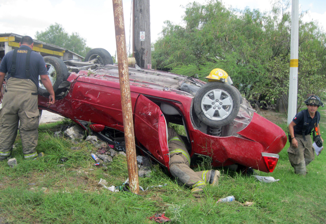 7/09/2015 - Cinco personas resultaron mal heridas en horas del mediodía de ayer en el kilómetro 3 de la carretera a Reynosa, al volcarse el automóvil en el que viajaban. Blanca Mélida Pérez, de
