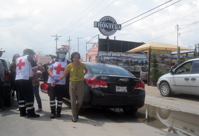 3/09/2015 - La falta de precaución para conducir, hizo que una mujer resultara lesionada, al pasarse una señal de alto y provocara fuerte colisión en unas avenidas de la colonia México. Rosario M