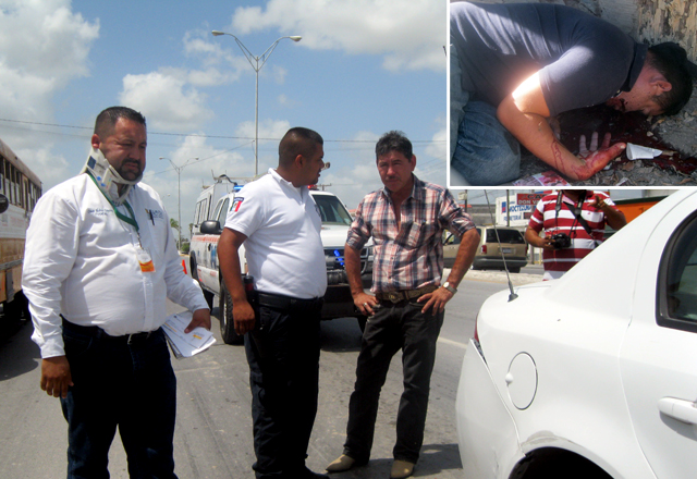 31/08/2015 - Un motociclista resultó con semi amputación de una pierna al ser impactado por un cafre del volante en unas calles de la colonia Las Norias, de donde huyó en una camioneta pick up mar