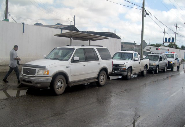 2/09/2015 - Una joven mujer embarazada resultó con leves golpes en el cuerpo, al involucrarse en un choque por alcance de tres camionetas, en las avenidas Lauro Villar Ochoa y Fidencio Trejo. La jov